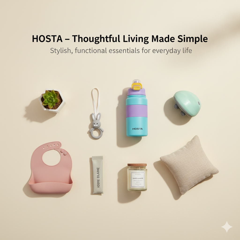 At HOSTA, we craft lifestyle essentials that go beyond utility — merging beauty, quality, and comfort into everything we create. Whether it’s a water bottle that fits your daily hustle or a cozy decor item that makes your home feel complete, we believe every product should add thoughtful value to your life.