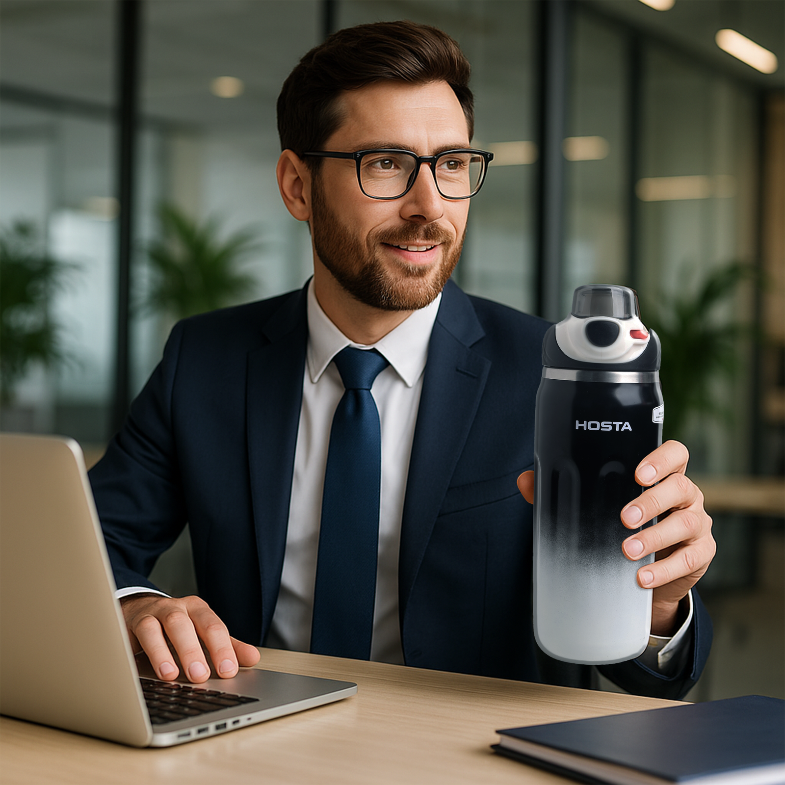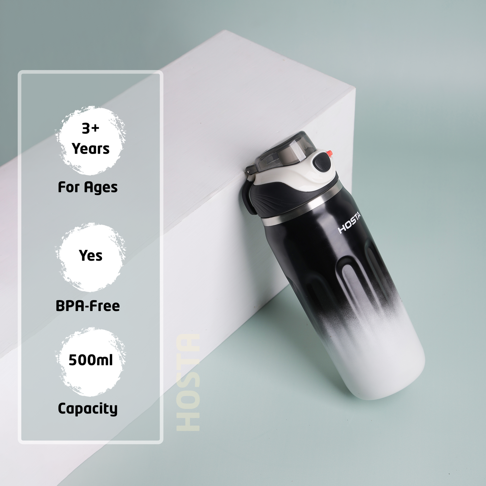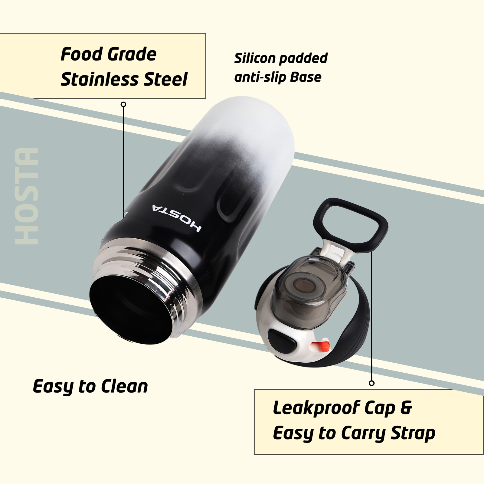Stay hydrated in style with the HOSTA 500ml Stainless Steel Vacuum Insulated Water Bottle – designed for both hot and cold beverages. This leak-proof, BPA-free bottle features a convenient Sip + Gulp lid and a sturdy hand handle for easy carrying. Whether you’re heading to the gym, office, school, or outdoor adventures, its durable build and sleek black finish make it the perfect everyday companion.