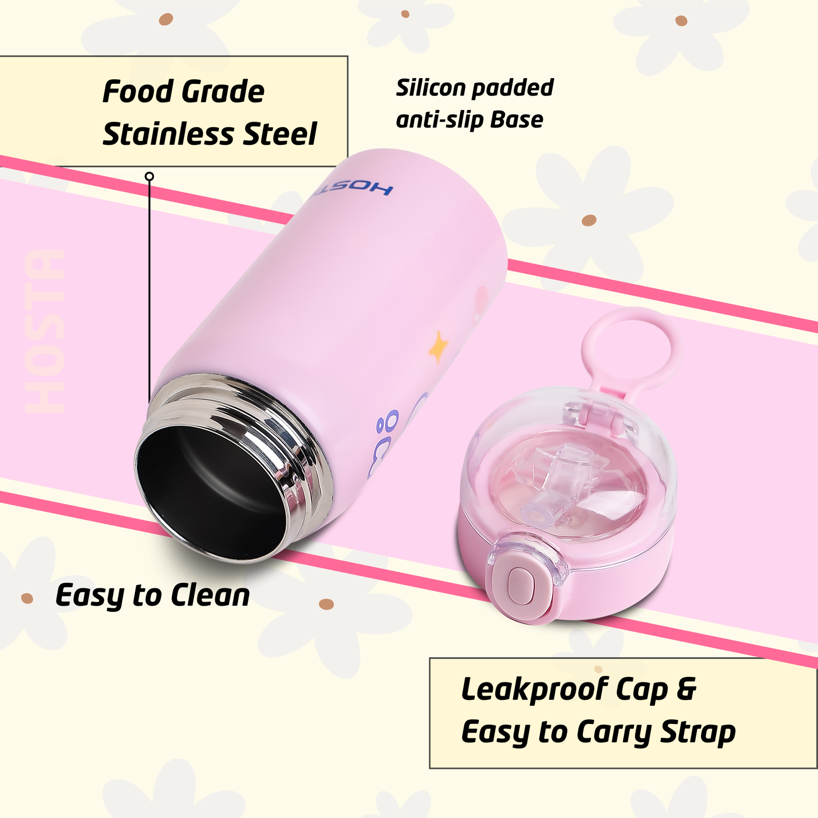 Be the first to review “HOSTA 350 ml Baby Pink Vacuum Insulated Kids Water Bottle”